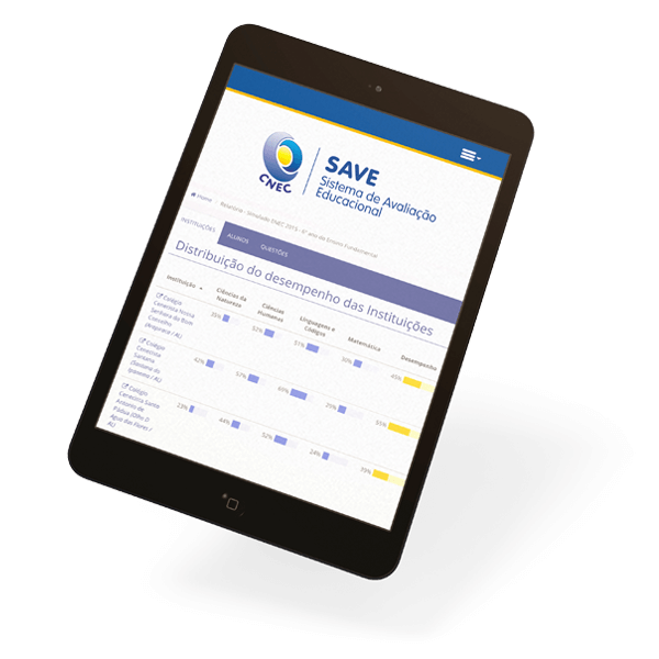 Com as mesmas características do ENEC, o SAVE tem como diferencial a adequação da avaliação à grade curricular da escola/rede de ensino, possibilitando a realização de uma avaliação diagnóstica no início do ano letivo e uma avaliação ao final do ano letivo, acompanhadas de uma série de relatórios que orientarão a condução pedagógica da instituição.